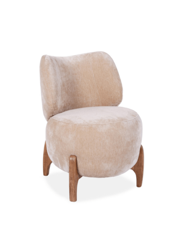Fotelj Maddalena stoji na štirih vitkih lesenih nogah z dinamično obliko, ki dodaja eleganco in subtilno zračnost. Prilagodljiva tkanina omogoča, da se fotelj prilega vsaki notranjosti, kombinacija udobja, stila in funkcionalnosti pa ga naredi odlično izbiro za dnevno sobo ali salon.