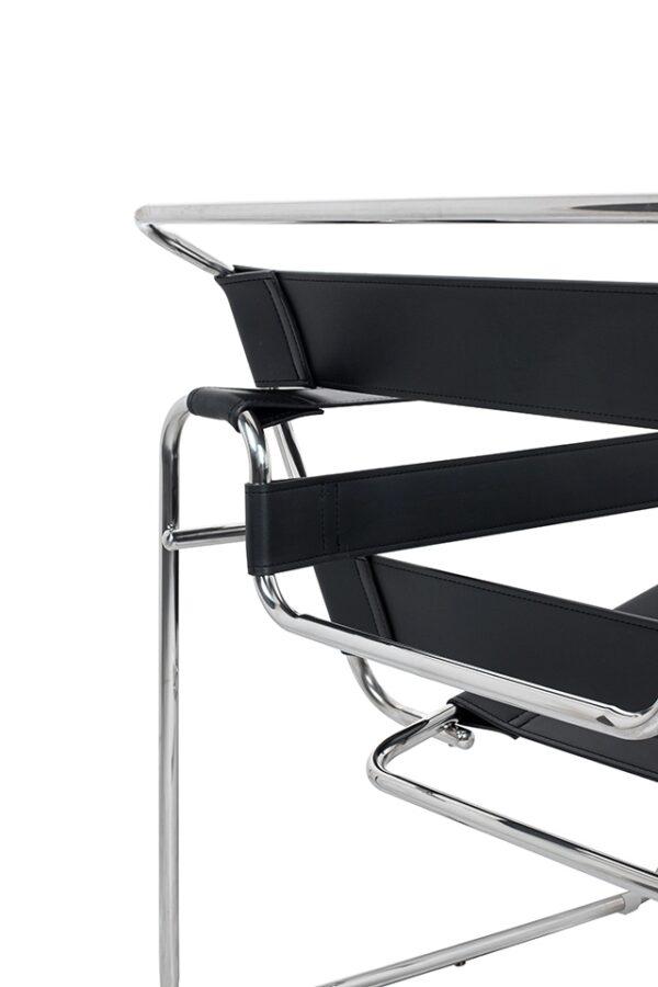 Fotelj Marcel je sodoben fotelj funkcionalne oblike. Sedež, naslonjalo in nasloni za roke so izdelani iz eko usnja, kar združuje stil z enostavnim vzdrževanjem. Črna barva v notranjost vnaša prefinjeno harmonijo.