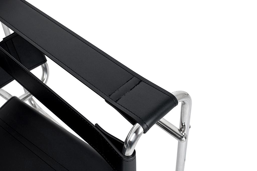 Fotelj Marcel je sodoben fotelj funkcionalne oblike. Sedež, naslonjalo in nasloni za roke so izdelani iz eko usnja, kar združuje stil z enostavnim vzdrževanjem. Črna barva v notranjost vnaša prefinjeno harmonijo.