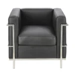 Navdihnjen z oblikovanjem poznih dvajsetih let prejšnjega stoletja, je fotelj Qubey sestavljen iz preprostega cevastega ogrodja iz nerjavečega jekla in blazin, prevlečenih z usnjem.