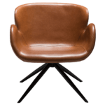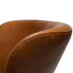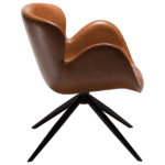 Ta eleganten fotelj izstopa s svojim mehkim sedežem in naslonjalo oblečeno v vintage svetlo rjavo eko usnje. Noge tega fotelja so prilagodljive.
