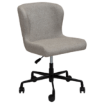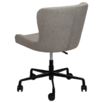Pisarniški stol izžareva eleganco s kraljevskim vtisom mehko oblikovanega sedeža iz rjavega bukle blaga. Podnožje tega stola je črne barve in ima 5 koles, ki omogočajo prosto gibanje po prostoru.