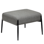 Ta kvadratni podstavek za noge odlično dopolnjuje različice z visokim in nizki naslonjali iz iste kolekcije. Uporabite ga kot oporo za noge ali dodaten sedež okoli klubske mizice. Tabure je oblečen v temno sivo blago iz bukleja in stoji na štirih črnih kovinskih nogah.