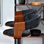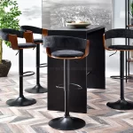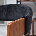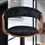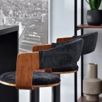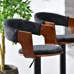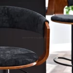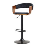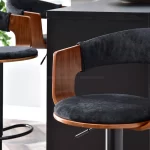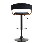 Barski stol, ki izžareva preprostost, barva oreha in črne tkanine pa poudarita njegovo lepoto in se tako prilega vsakemu interierju.