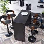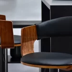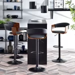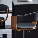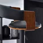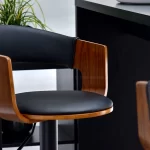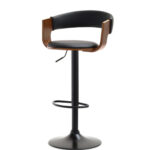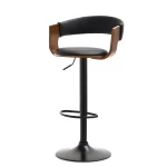 Barski stol, ki izžareva preprostost, barva oreha in črne tkanine pa poudarita njegovo lepoto in se tako prilega vsakemu interierju.