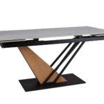 Jedilna miza Gomez je izdelana iz keramične imitacije marmorja in podnožja, ki je kombinacija MDF in kovine. Miza Gomez je dimenzij 160×90 cm, raztegljiva pa je do 220 cm. Podstavek z nenavadnim dizajnom bo poudarek v prostoru, dodatek lesa pa bo vašemu interierju vnesel toplino.