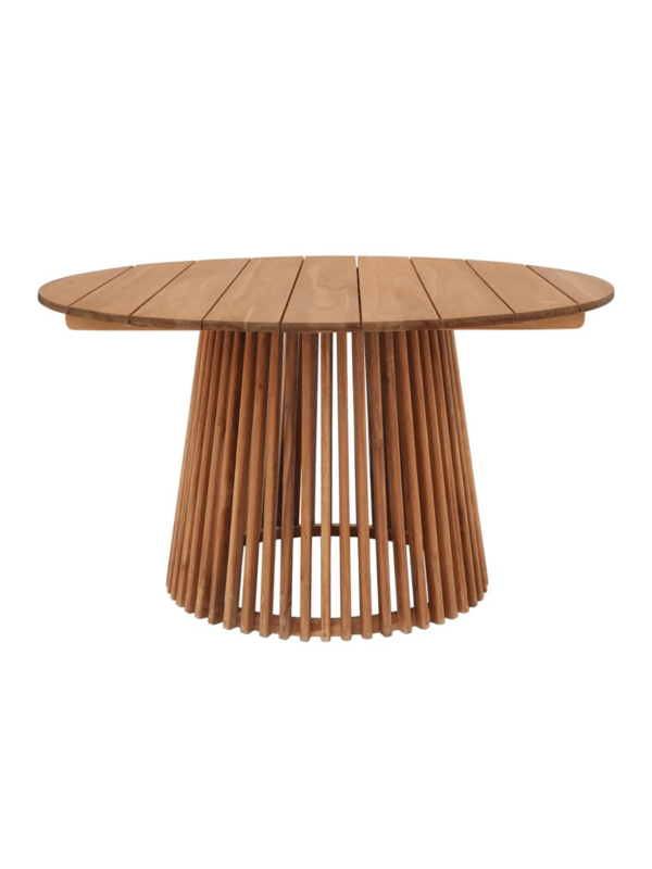 Gostinska miza Piemonte, izdelana iz tikovine, bo vaši terasi dodala rustikalen čar. Letveno podnožje je vizualno presenetljiv element, hkrati pa zagotavlja stabilnost mize.