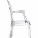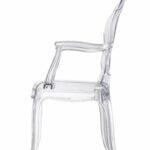 Sodoben prozoren stol Kvinne je izdelan iz plastike s sijajnim zaključkom, zaradi česar je enostaven za čiščenje. Dekorativni zaključki na podstavku in zgornjem delu sedeža mu dajejo edinstven videz. Stol je zložljiv.