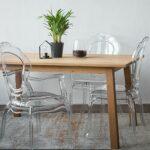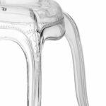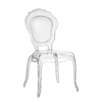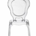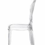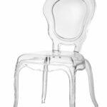 Sodoben prozoren stol Kvinne je izdelan iz plastike s sijajnim zaključkom, zaradi česar je enostaven za čiščenje. Dekorativni zaključki na podstavku in zgornjem delu sedeža mu dajejo edinstven videz. Stol je zložljiv.