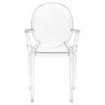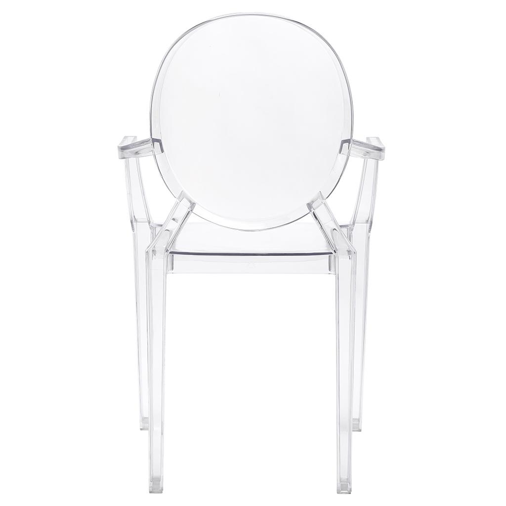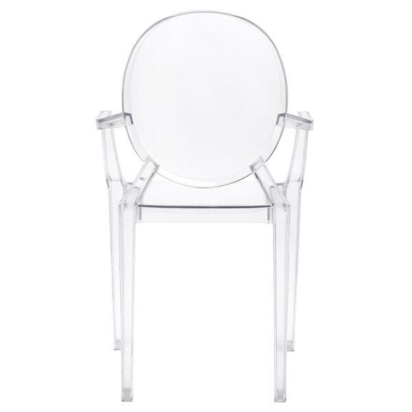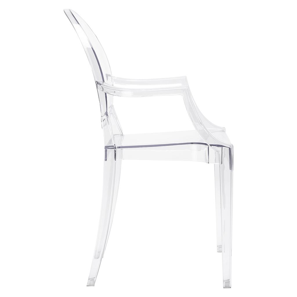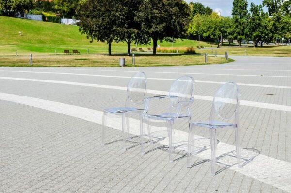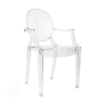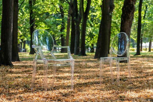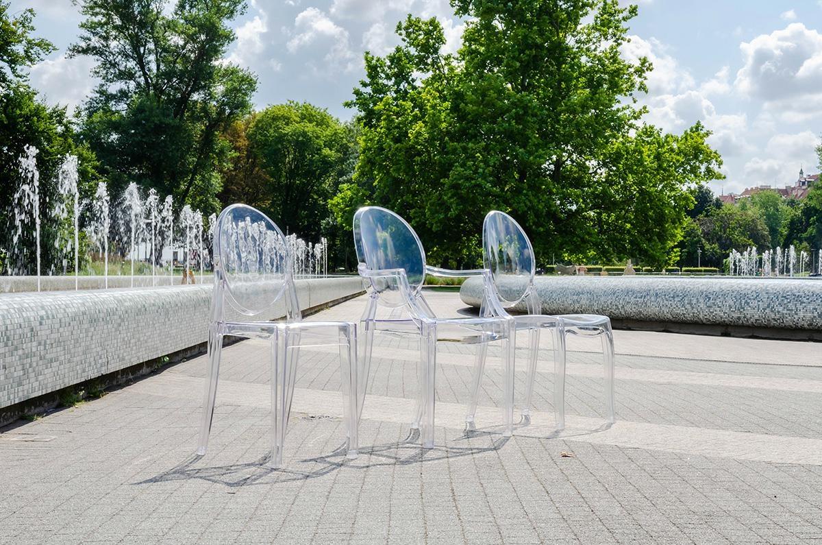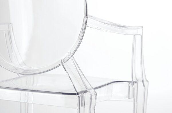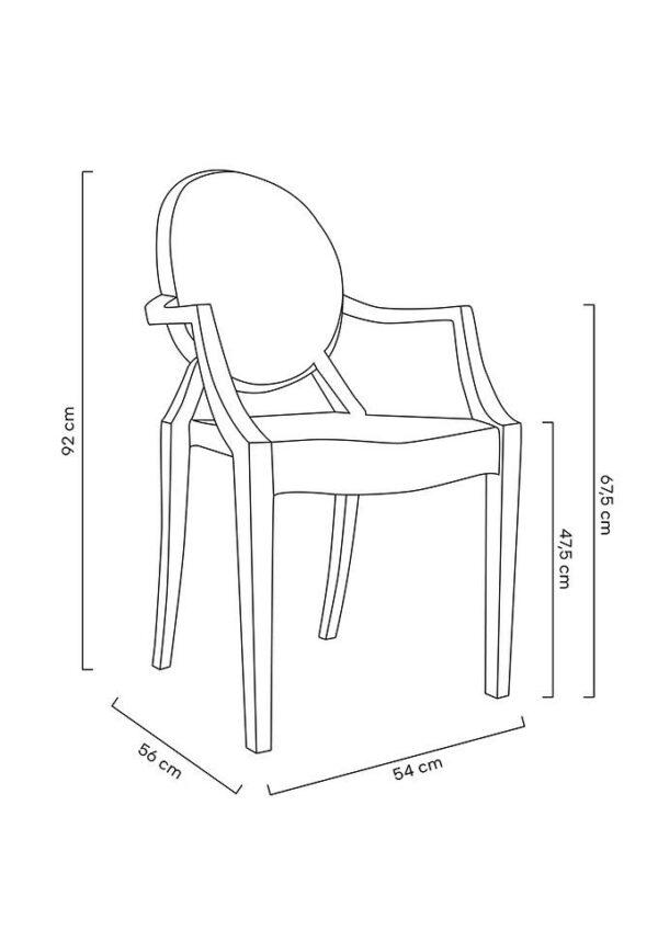 Gostinski stol Luis je v celoti izdelan iz lahkega polikarbonata, ki je tudi izjemno trpežen, odporen na udarce in lahko prenese težo do 150 kg. Prozorna barva pomeni, da vizualno ne preobremeni prostora in v notranjost vnese občutek lahkotnosti.
