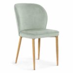 Stol je izdelan na lesenem okvirju in kovinskih nogah. Z izbiro barve materiala ga boste lažje prilagodili preostalemu prostoru.