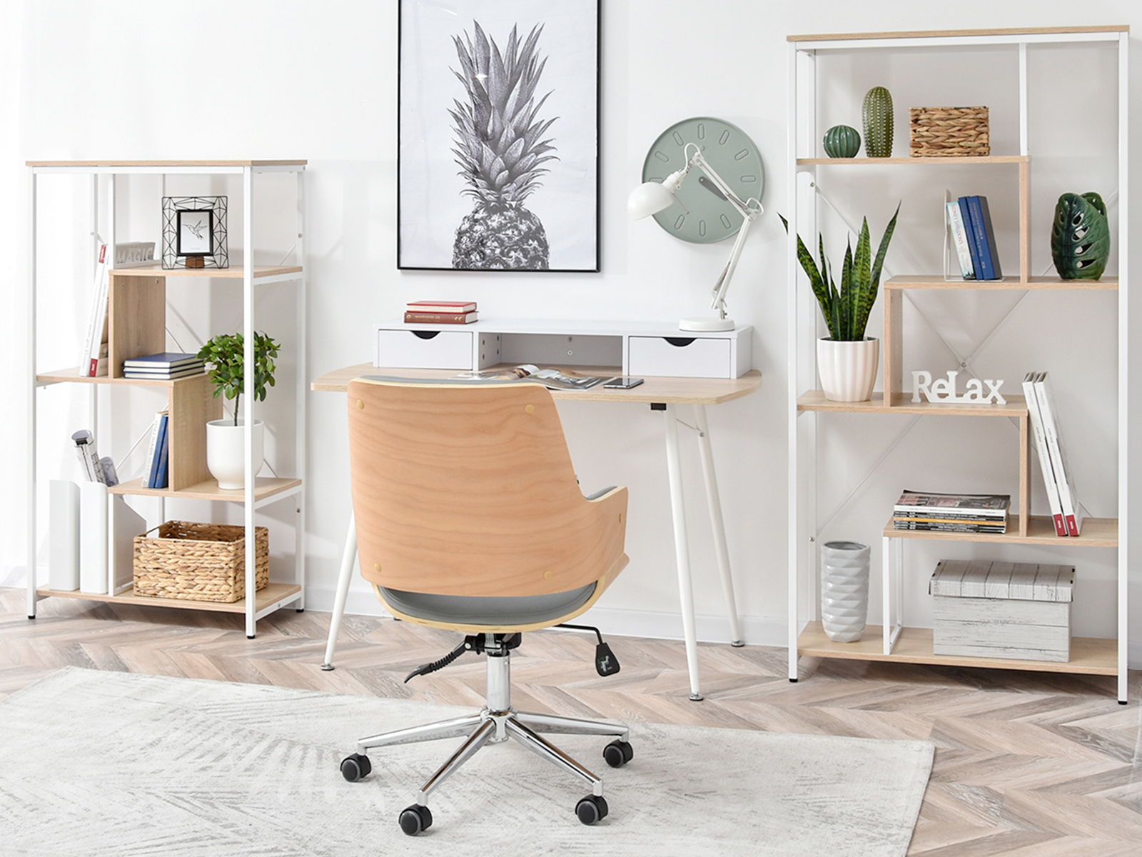 | Idealna rešitev za dnevno sobo, delovno sobo ali nek drug sodoben interier. Lahko se kombinira z regali različnih višin iz iste kolekcije, kakor tudi z delovnimi mizami istega dizajna. |