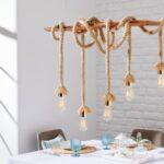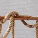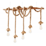 Petkratni obesek Jaga je izdelan iz svetlega lakiranega lesa kitajskega lešnika in naravne pletene vrvi, kar ustvarja fuzijo tradicionalnega in modernega.