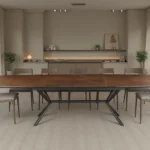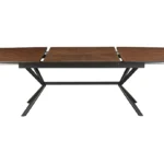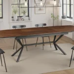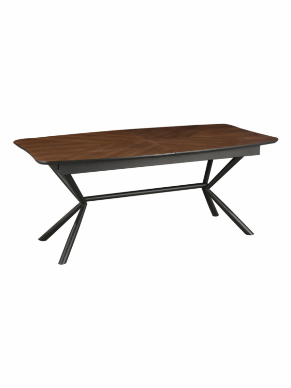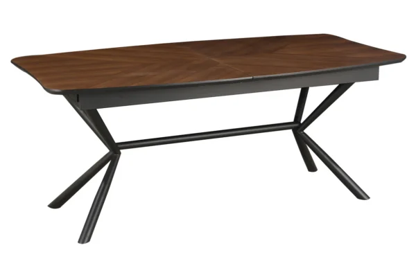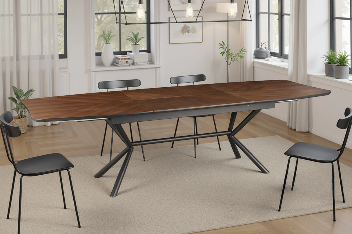Jedilna miza Apollo združuje tople orehovske tone z robustnim črnim okvirjem, kar vašemu prostoru daje tako stil kot prilagodljivost.