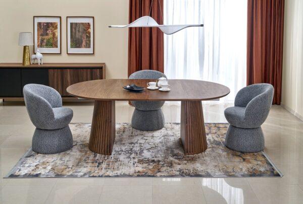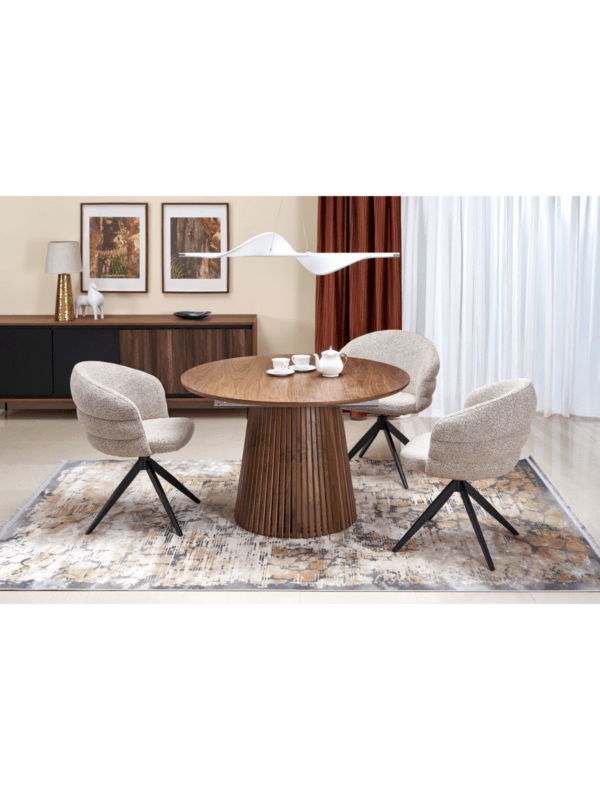 Miza Casper je eleganten in sodoben kos pohištva, ki odlično združuje funkcionalnost z estetiko. Gre za okroglo, raztegljivo mizo, ki je odlična tako za vsakodnevno uporabo kot za večja druženja s skupnimi obroki.