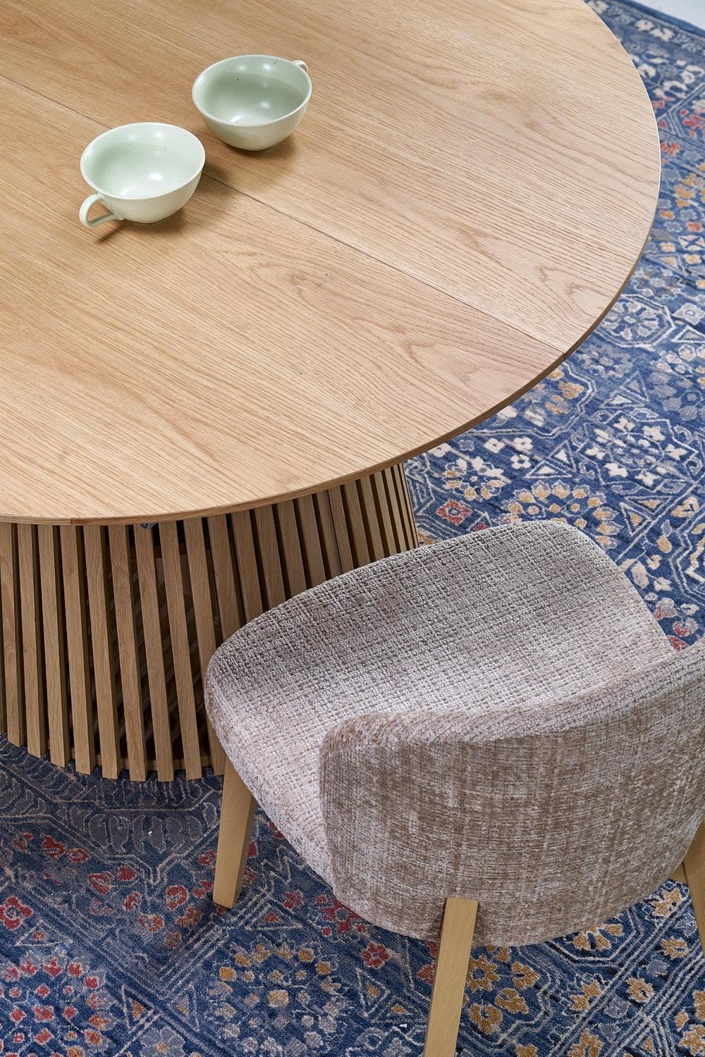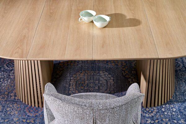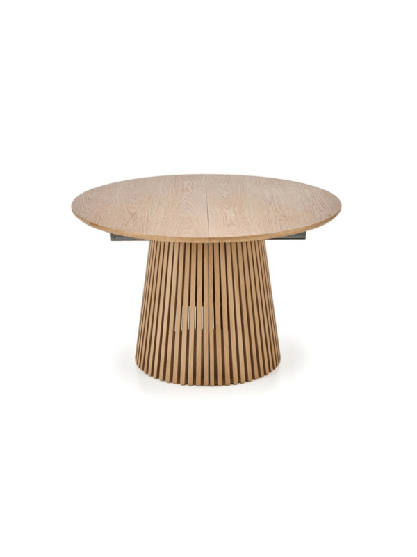 Miza Casper je eleganten in sodoben kos pohištva, ki odlično združuje funkcionalnost z estetiko. Gre za okroglo, raztegljivo mizo, ki je odlična tako za vsakodnevno uporabo kot za večja druženja s skupnimi obroki.