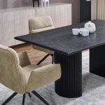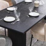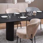 Jedilna miza Colette je utelešenje elegance in sodobnega minimalizma. Njena MDF plošča, prekrita s črnim, naravnim hrastovim furnirjem, privlači pogled s svojo mehko mat površino, ki doda globino in značaj.