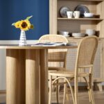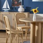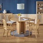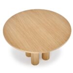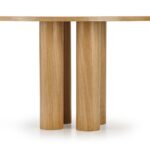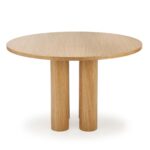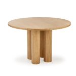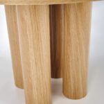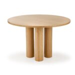 Okrogla miza s premerom 120 cm v barvi naravnega hrasta in večdelnim, rolo podnožjem je v koraku z najnovejšimi oblikovalskimi rešitvami za notranjo opremo. Njegova nenavadna oblika resonira z naravnimi, zaobljenimi oblikami. V kombinaciji z lesenimi ali ratanovimi stoli ter dodatkom zelenih rastlin v prostoru boste ustvarili mirno oazo za obedovanje, bivanje in druženje.