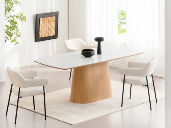 Jedilna miza Elin v vašo jedilnico prinaša skandinavsko preprostost s keramično površino, ki je hkrati trpežna in elegantna. Svetla površina z učinkom marmorja je odlična za različne priložnosti, od pogovorov o vinu do velikih nedeljskih kosil.