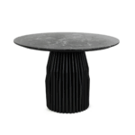Jedilna miza Kiarostami je idealna za tiste, ki cenijo ekspresiven dizajn. Plošča mize je izdelana iz morsko črnega marmorja z naravnimi žilami, kar v notranjost vnaša pridih elegance. Dekorativno izrezljano podnožje iz mangovega lesa je sodoben poudarek, ki pritegne pozornost in mizi daje edinstven značaj.