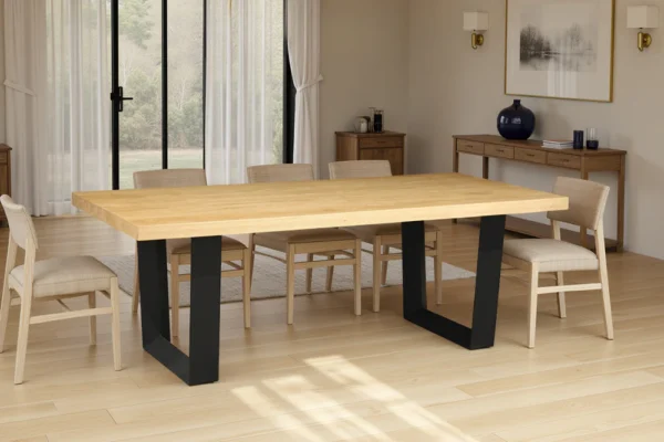 Jedilna miza Londra iz naravnega hrasta z elegantnim črnim kovinskim okvirjem bo vašo jedilnico naredila prefinjeno in privlačno.