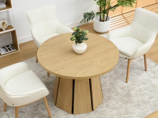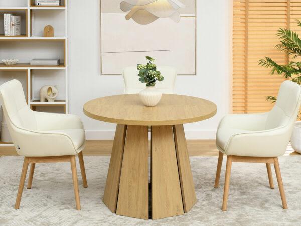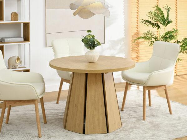 Jedilna miza Marketa se odlično poda v moderno, minimalistično in industrijsko notranjost. Hrastov zaključek in preprosta oblika z geometrijskim podnožjem ji dajeta značaj podstrešja, ki se lepo zliva z lesom in kovino. Hkrati pa je zaradi elegantnega videza popoln dodatek vsakemu prostoru, kjer sta estetika in funkcionalnost ključnega pomena.