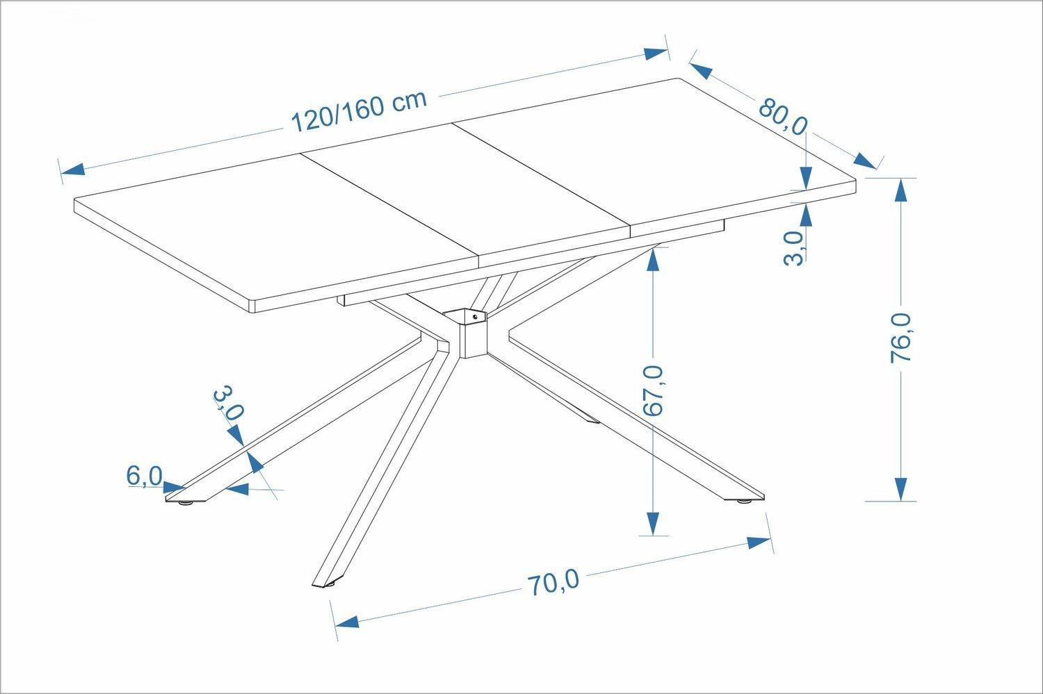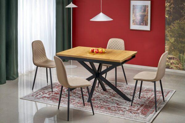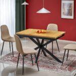 Orvin je raztegljiva miza, ki se prilagaja številu ljudi in različnim priložnostim. Kombinacija lesene mizne plošče in črnega kovinskega podnožja ustvarja harmonično kompozicijo, ki se bo dobro podala v moderne, industrijske in loftne jedilnice ali dnevne sobe.