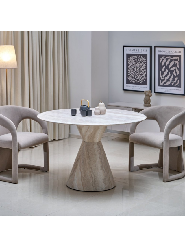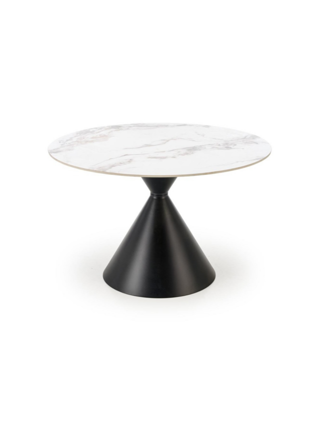 Miza Sandy je eleganten in funkcionalen kos pohištva z modernim dizajnom. Njena okrogla plošča je izdelana iz MDF-ja z melaminskim premazom, kar zagotavlja vzdržljivost in odpornost na vsakodnevno uporabo. Zahvaljujoč raztegljivi funkciji jo je mogoče enostavno razširiti, da sprejme več ljudi.