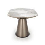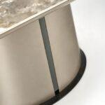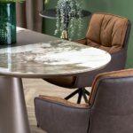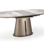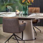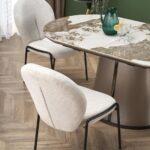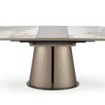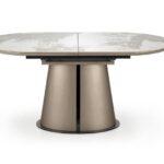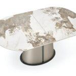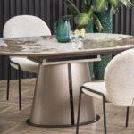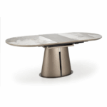 Jedilna miza Valpurga brezhibno združuje stil in funkcionalnost. Ta vsestranska raztegljiva miza ima keramično površino v marmorno-bež barvi, ki jo dopolnjuje lakiran MDF in trdne noge iz prašno barvanega jekla. Noge so v prefinjeni barvi kapučina in črni barvi, kar vsakemu jedilnemu prostoru doda pridih elegance.