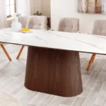 Jedilna miza Yves v vašo jedilnico prinaša skandinavsko preprostost s keramično površino, ki je hkrati trpežna in elegantna. Svetla površina z učinkom marmorja je odlična za različne priložnosti, od pogovorov o vinu do velikih nedeljskih kosil.