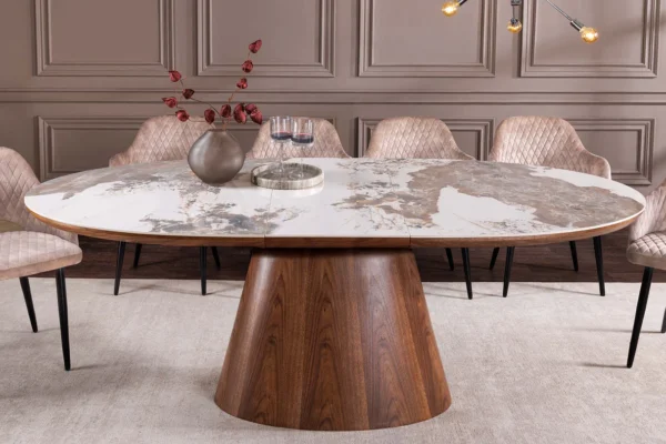 Jedilna miza Yves v vašo jedilnico prinaša skandinavsko preprostost s keramično površino, ki je hkrati trpežna in elegantna. Svetla površina z efektom kamna je odlična za različne priložnosti, od pogovorov o vinu do velikih nedeljskih kosil.