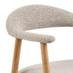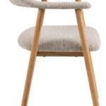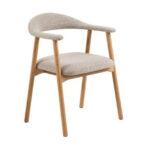 Jedilni stol Addimio z naslonjali za roke je model v stilu boho z oblazinjenim sedežem in naslonjalom. Konstrukcija je iz oljenega, masivnega hrastovega lesa. Stabilno podnožje in popolno profilirano hrbtišče zagotavljata udobje pri sedenju. Blago za sedeže in naslonjala je gosto tkano v prijetnem in toplem bež odtenku. Zanimiva tekstura in zelo gosto prepletanje materiala ustvarja popolno kombinacijo z naravnimi lesnimi vlakni nog. Največja nosilnost stola je 110 kg.