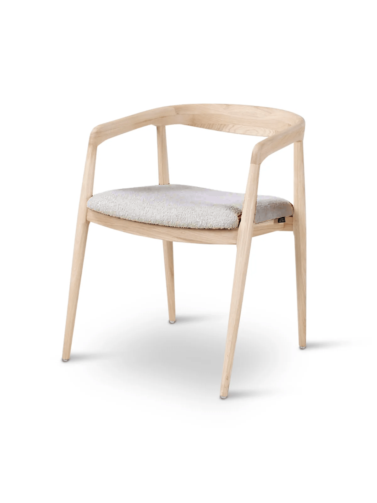 Elegantno hrastovo ogrodje in ukrivljeni nasloni za roke jedilnega stola Adele ustvarjajo sodoben in eleganten videz. Stol Adele je popoln za jedilnice ali pisarne in se brezhibno prilega tako moderni kot klasični notranjosti.