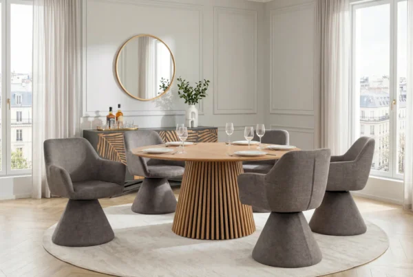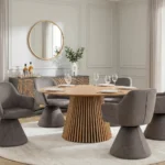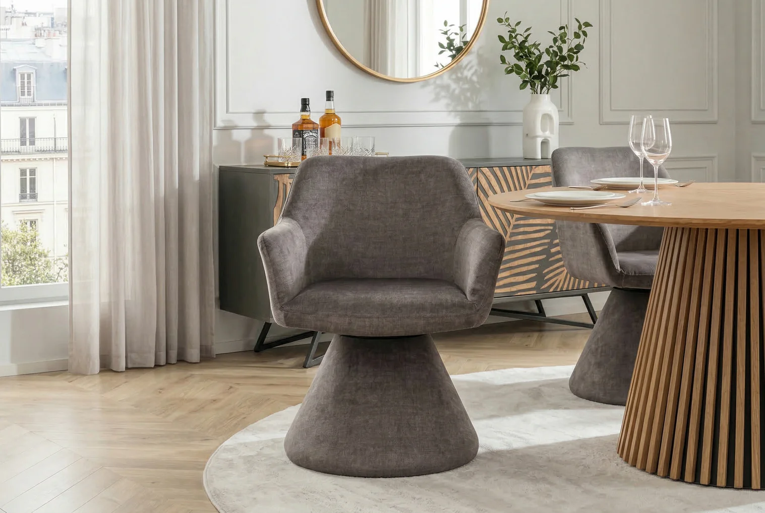 Jedilni stol Arne je popolna kombinacija modernosti in klasične elegance. Oblazinjena zožena noga daje modelu značilen dizajn, zahvaljujoč možnosti vrtenja s funkcijo samodejnega vračanja pa stol zagotavlja udobje.