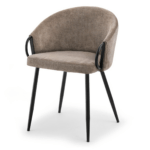 Jedilni stol Claire je eleganten model, ki ga prepoznamo po diskretnih ročajih za premikanje, ki so vgrajeni v naslonjala za roke, ter strukturni tkanini. Konstrukcija je črne barve, kar v kombinaciji z mehkimi materiali daje stolu dodaten sijaj.