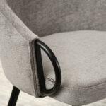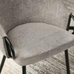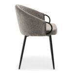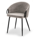 Jedilni stol Claire je eleganten model, ki ga prepoznamo po diskretnih ročajih za premikanje, ki so vgrajeni v naslonjala za roke, ter strukturni tkanini. Konstrukcija je črne barve, kar v kombinaciji z mehkimi materiali daje stolu dodaten sijaj.