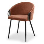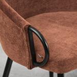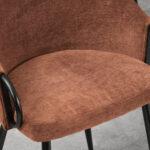 Jedilni stol Claire je eleganten model, ki ga prepoznamo po diskretnih ročajih za premikanje, vgrajenih v naslonjala za roke, ter po strukturni tkanini. Konstrukcija je črne barve, kar v kombinaciji z mehkimi materiali daje stolu dodaten sijaj.
