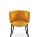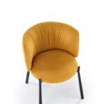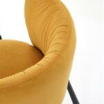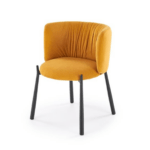 Jedilni stol Doss je prevlečen z žametnim materialom v veselem gorčičnem odtenku. Stol ima kovinske noge prašno lakirane v črni barvi, ki dodajo modernost in stabilnost celotni konstrukciji. Zahvaljujoč zaobljenemu naslonjalu ponuja stol praktičnost in udobje, ne glede na to ali sedite za mizo med družinsko večerjo ali se sproščate v dnevni sobi ob skodelici kave.