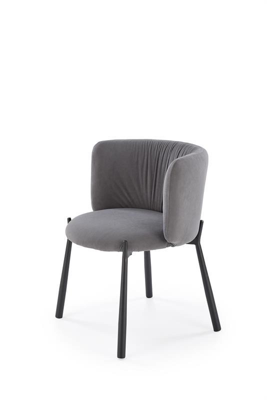 Jedilni stol Doss je prevlečen z žametnim materialom v elegantnem sivem odtenku. Stol ima kovinske noge prašno lakirane v črni barvi, ki dodajo modernost in stabilnost celotni konstrukciji. Zahvaljujoč zaobljenemu naslonjalu ponuja stol praktičnost in udobje, ne glede na to ali sedite za mizo med družinsko večerjo ali se sproščate v dnevni sobi ob skodelici kave.
