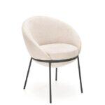 Jedilni stol Friday odlikuje črna kovinska konstrukcija in mehko sedišče iz grobo vezane tkanine v bež odtenku. Zaradi udobne, ukrivljene oblike je odlična izbira za dnevno sobo.