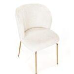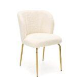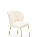 Jedilni stol Geno odlikuje sijoča kovinska konstrukcija in mehak sedež iz bukleja v krem odtenku. Zaradi udobne, ukrivljene oblike je odlična izbira za dnevno sobo.