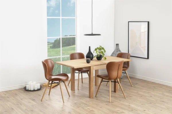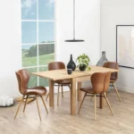 Jedilni stol Gunnar združuje sodoben dizajn z brezčasno eleganco. Organska oblika sedeža, oblazinjenega v visokokakovostno eko usnje (PU), zagotavlja udobje in oporo med vsakodnevno uporabo, kontrastni šivi pa dodajo značaj.