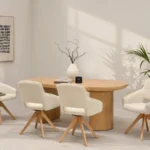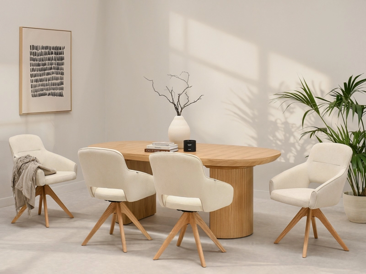 Jedilni stol Liguria izstopa predvsem po svojem vrtljivem sedežu, ki povečuje svobodo gibanja in olajša vsakodnevno uporabo. Praktični nasloni za roke zagotavljajo dodatno oporo in znatno izboljšajo udobje med dolgimi delovnimi urami ali med obroki.