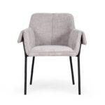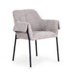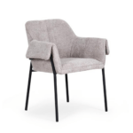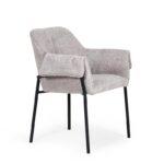 Jedilni stol Pomme ima mehko oblazinjeno sedišče, ki gladko prehaja v naslonjalo za roke in hrbet. Mešanica teksture blaga in elegantnih črnih kovinskih nog vam daje dovolj svobode za kombiniranje tega udobnega stola v kateri koli sobi s katero koli barvo.