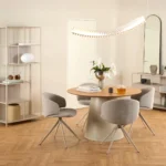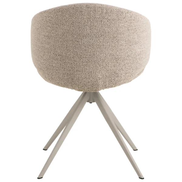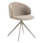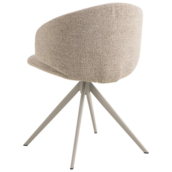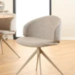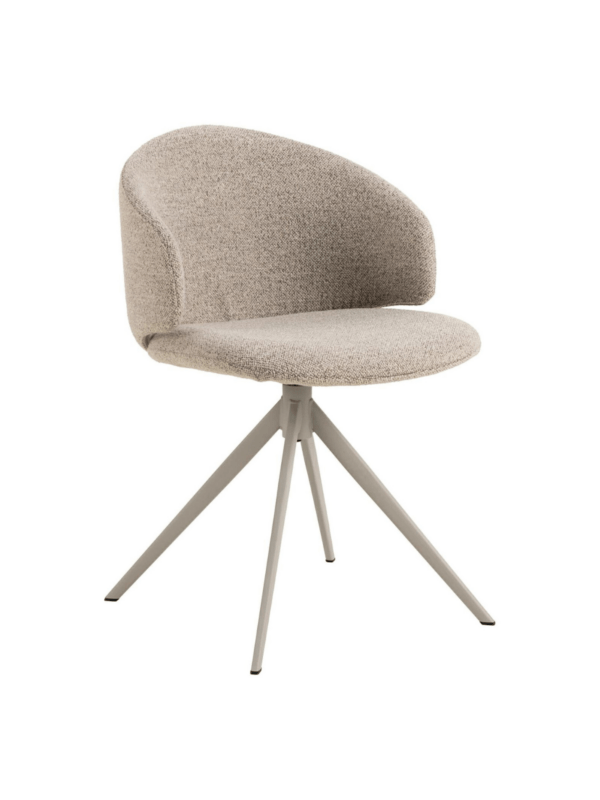 Jedilni stol Stellan je eleganten dodatek k vsaki jedilnici s praktičnim vrtljivim sedežem. Stol je oblazinjen v mehko tkanino, podobno bukléju, v toplem bež odtenku, kar mu daje sodoben in privlačen videz. Trdno podnožje iz prašno barvanega jekla zagotavlja stabilnost in sodoben videz.
