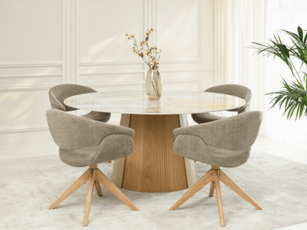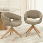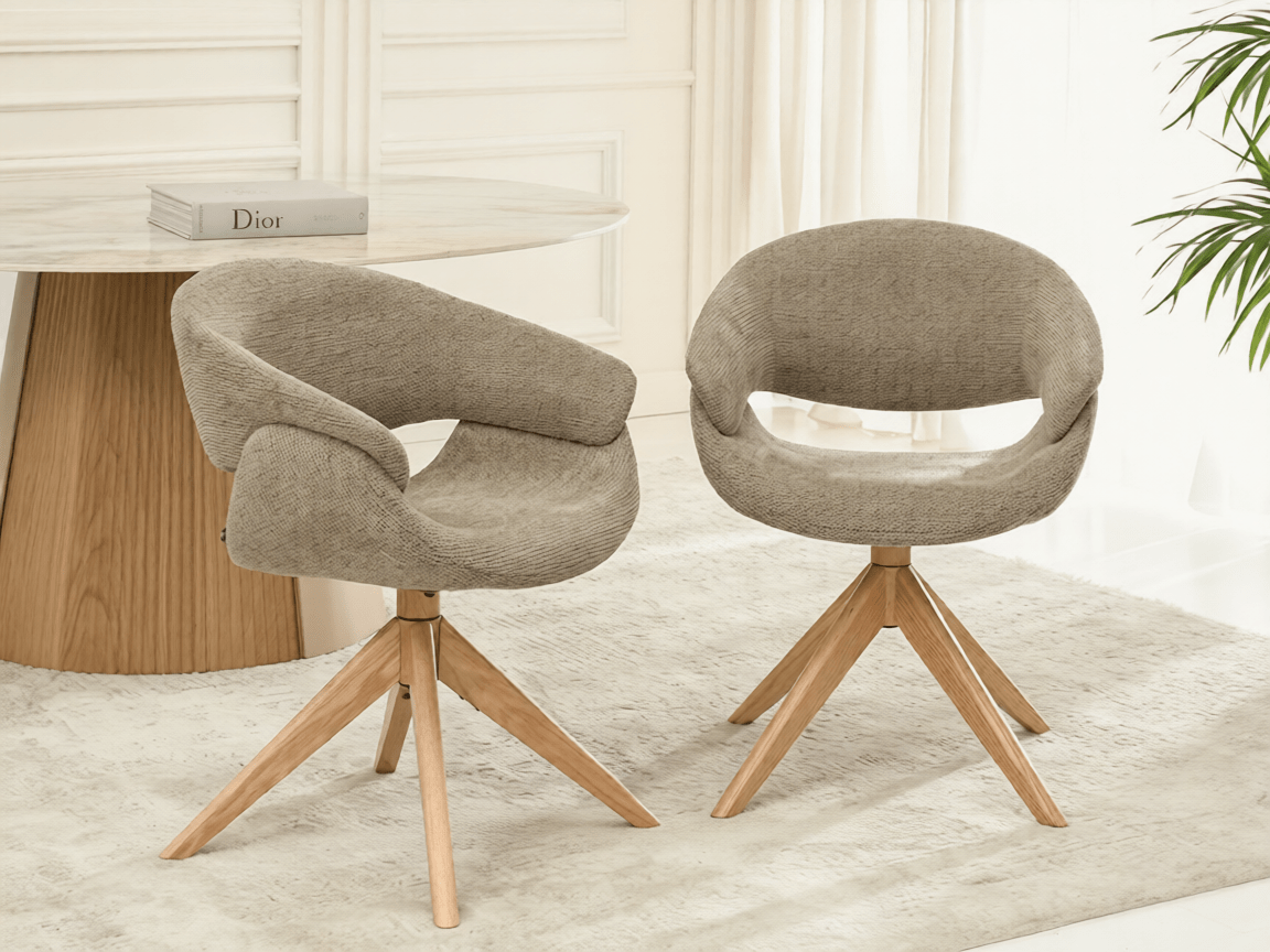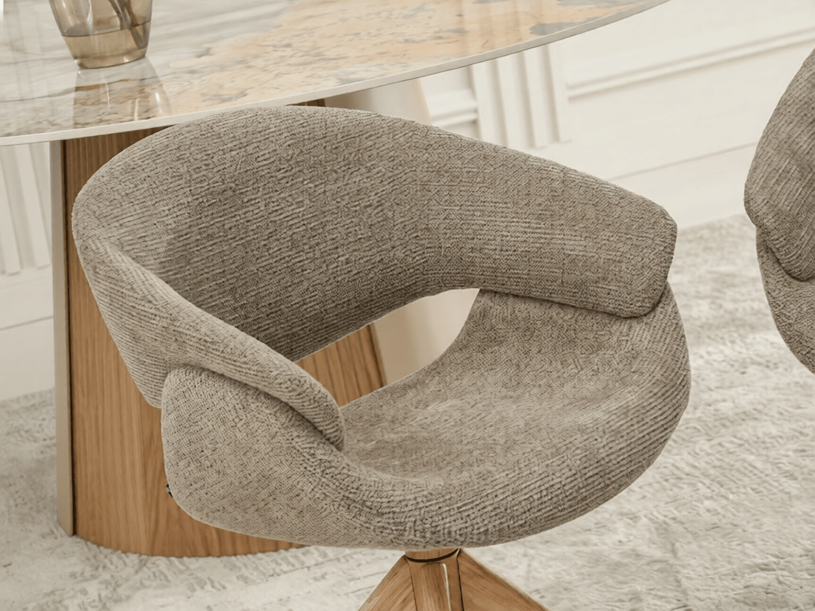 Jedilni stol Stieg pooseblja sodoben slog s pridihom naravne topline lesa. Njegova svetlo rjava tkanina se brezhibno prilega različnim notranjim prostorom, od minimalističnega do skandinavskega.