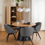 Vnesite pridih prefinjenosti v svoj dom z jedilnim stolom Tieni, kjer se udobje sreča s sodobnim dizajnom. Potopite se v sedež z žepkastimi vzmetmi in uživajte v svobodi vrtenja s podpornimi nasloni za roke za izboljšano izkušnjo sedenja.