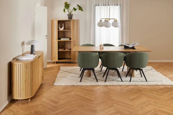Vnesite pridih prefinjenosti v svoj dom z jedilnim stolom Tieni, kjer se udobje sreča s sodobnim dizajnom. Potopite se v sedež z žepkastimi vzmetmi in uživajte v svobodi vrtenja s podpornimi nasloni za roke za izboljšano izkušnjo sedenja.
