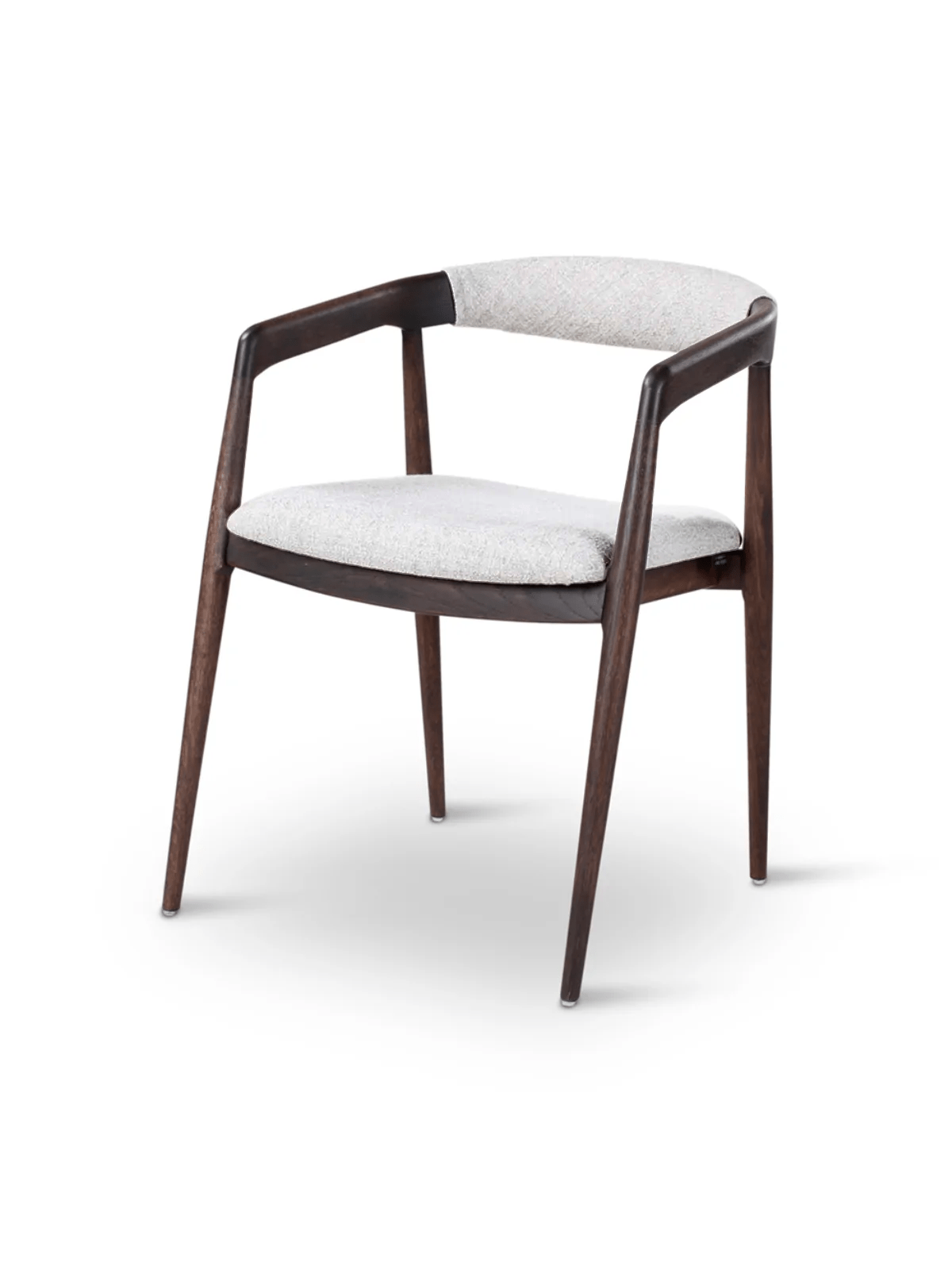 Jedilni stol Zora elegantno združuje sodoben videz z vrhunskim udobjem. Edinstvena značilnost tega stola je naslonjalo, ki je oblazinjeno v isto tkanino kot sedež, zaradi česar je še udobnejši od tradicionalnega lesenega stola. Model Zora je mogoče popolnoma prilagoditi vašemu slogu in željam.