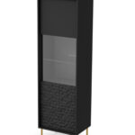 Visoka komoda Jeremy z reliefnimi detajli v elegantnih, črnih tonih bo poskrbela za ‘statement’ lego vaše dnevne sobe. Poleg 41 cm globokega odlagalnega prostora je dvignjen na zlatih nogah, kar omogoča enostavno vzdrževanje ostalega prostora, a tudi specifično lahkotnost, ki v kombinaciji z masivnim videzom lesa poskrbi za nenavaden kontrast. . S svojimi natančnimi merami se zlahka prilega v poljubno velik prostor.
